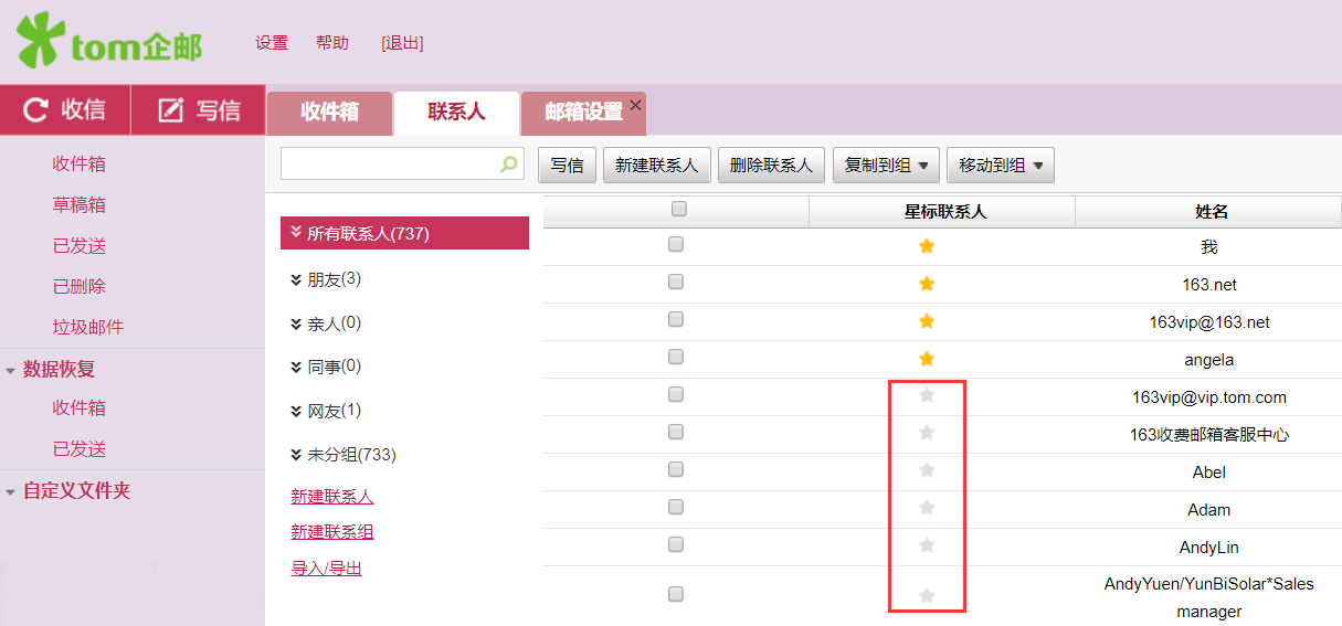 取消星标联系人